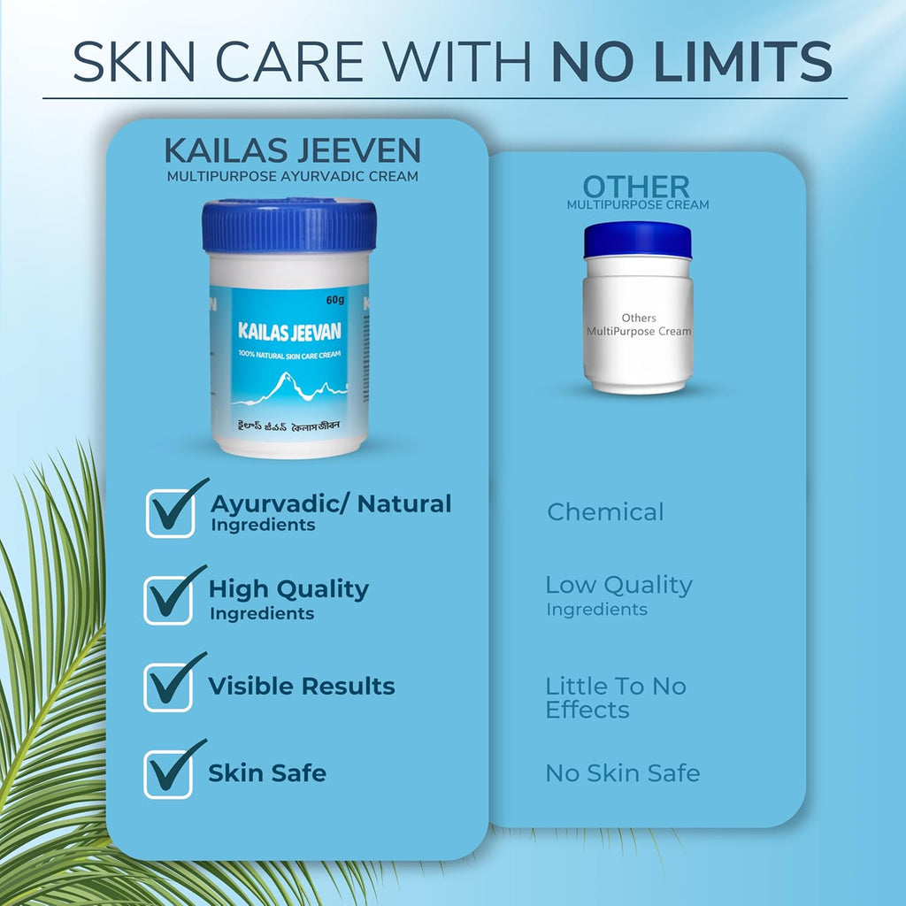 - Natural Skincare Cream for Moisturization: Experience the benefits of Kailas Jeevan Natural Skincare Cream, specifically made for intensive hydration. This chemical-free skin moisturizer works wonders in providing good results in dry areas, ensuring your skin remains smooth and refreshed throughout the day.