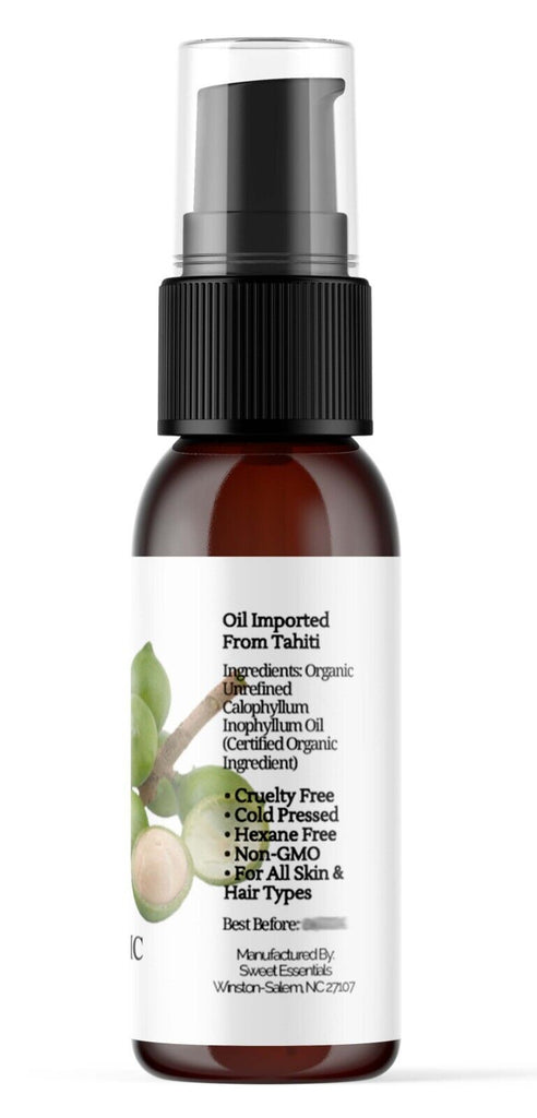 Organic Unrefined Tamanu Oil - 2 oz Glass Bottle with Pump - 100% Pure, Imported from Tahiti