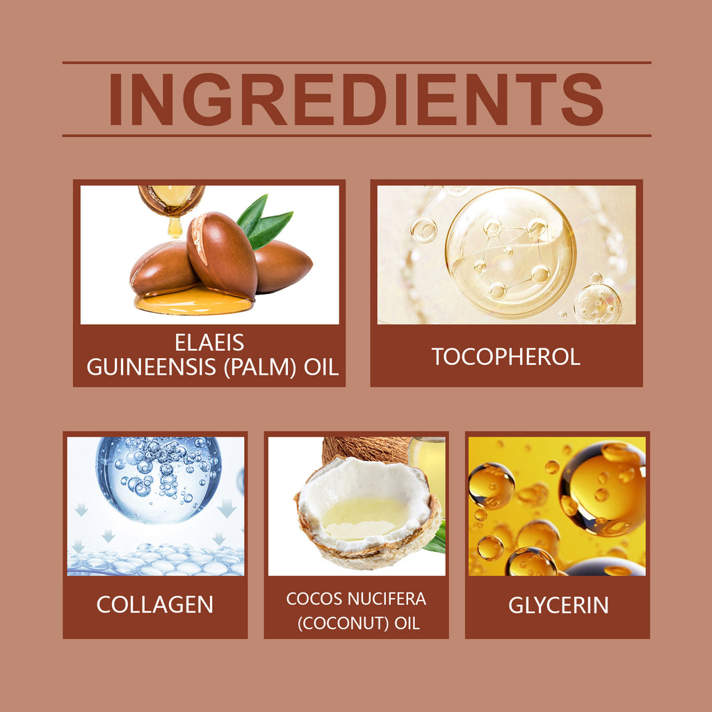 Our Batana hair oil contains Batana oil, collagen, coconut oil. It can provide a powerful repair to the hair, helping to improve the strength and elasticity of the hair. Reduce hair breaks and split ends, leaving hair shiny and healthy. The way to use it is simple: 1. Clean your hair and scalp and keep it dry. 2. Apply appropriate amount to hair and scalp. 3. Gently massage until absorbed. Rich in nutrients, Batana oil can deeply nourish the scalp, stimulate hair follicles, promote healthy hair growth, help increase hair density and reduce hair loss problems.